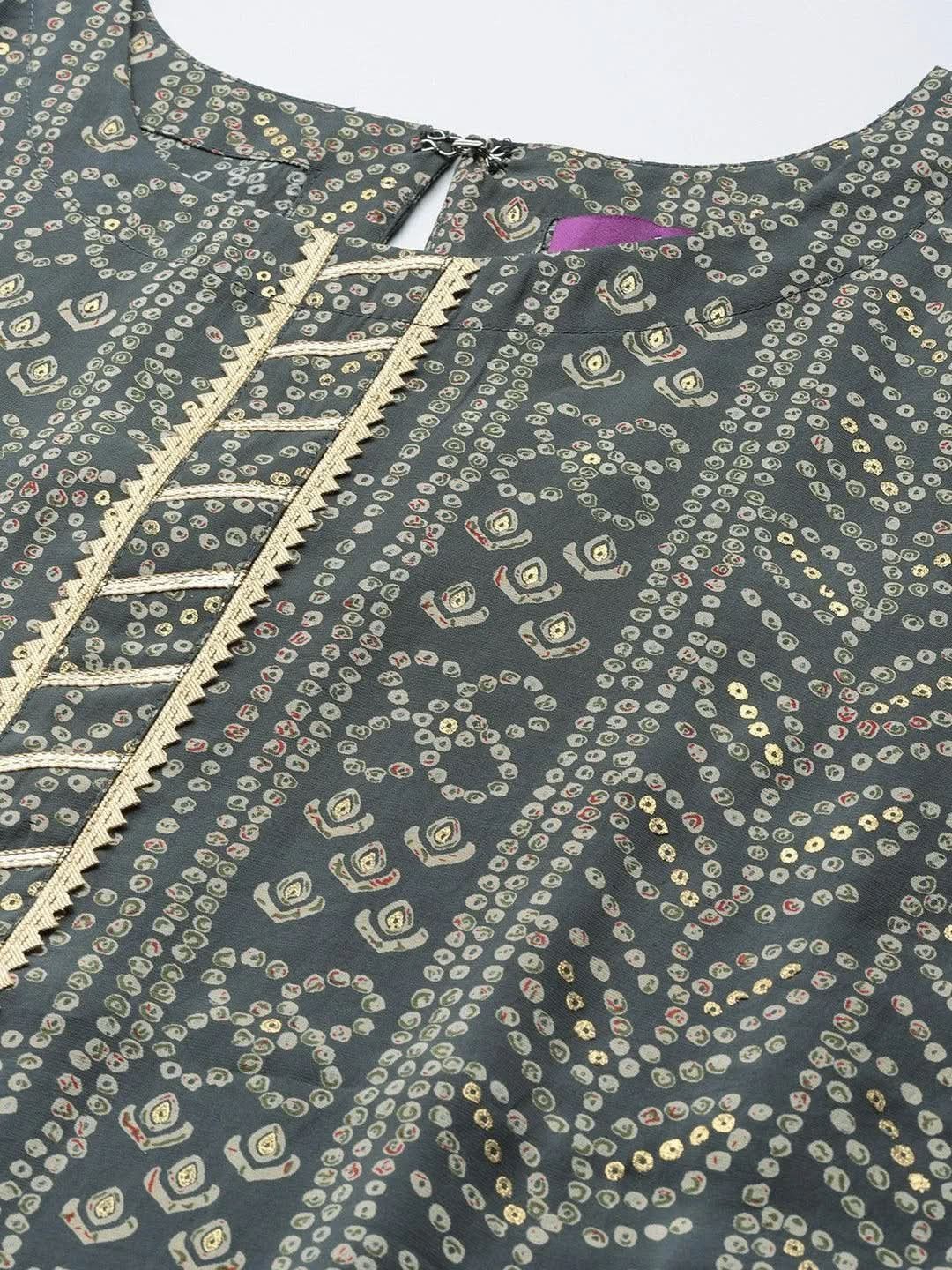 Grey Printed Silk Straight Kurta