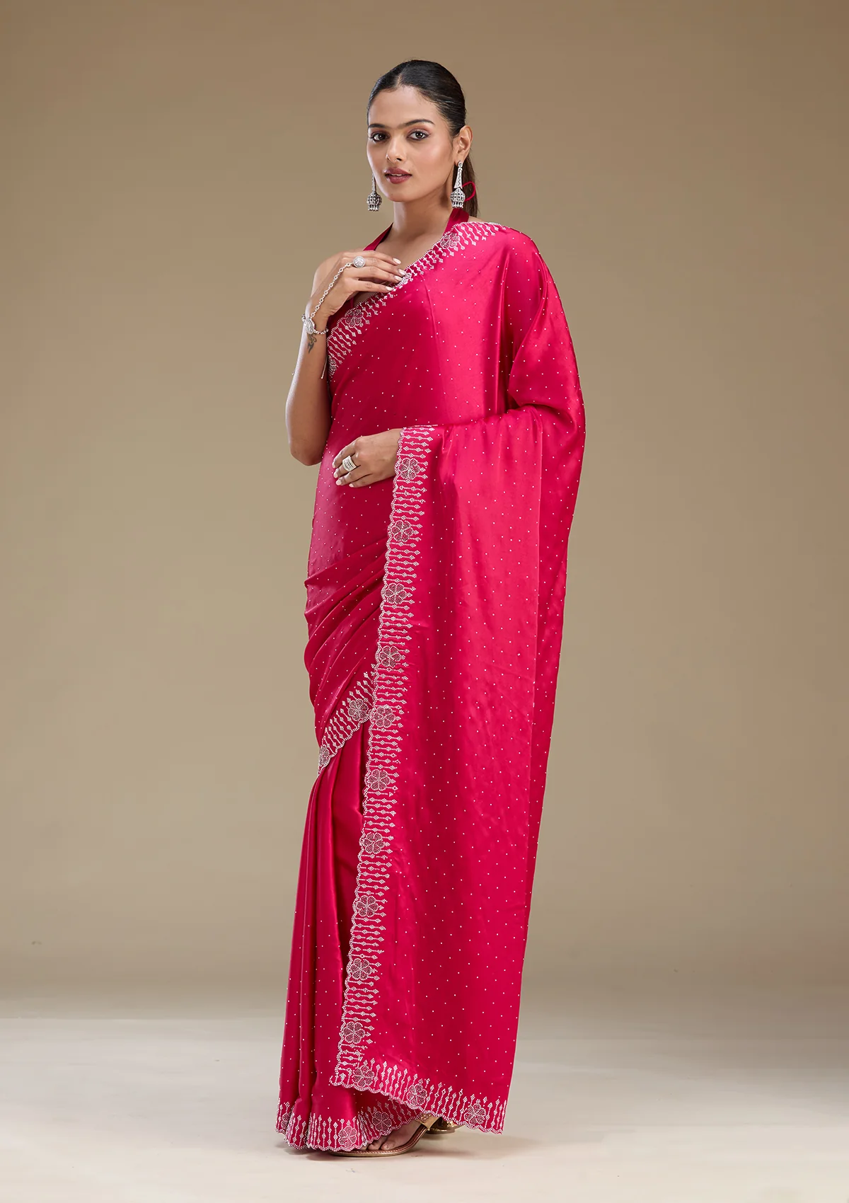 Rani Pink Swarovski Satin Saree