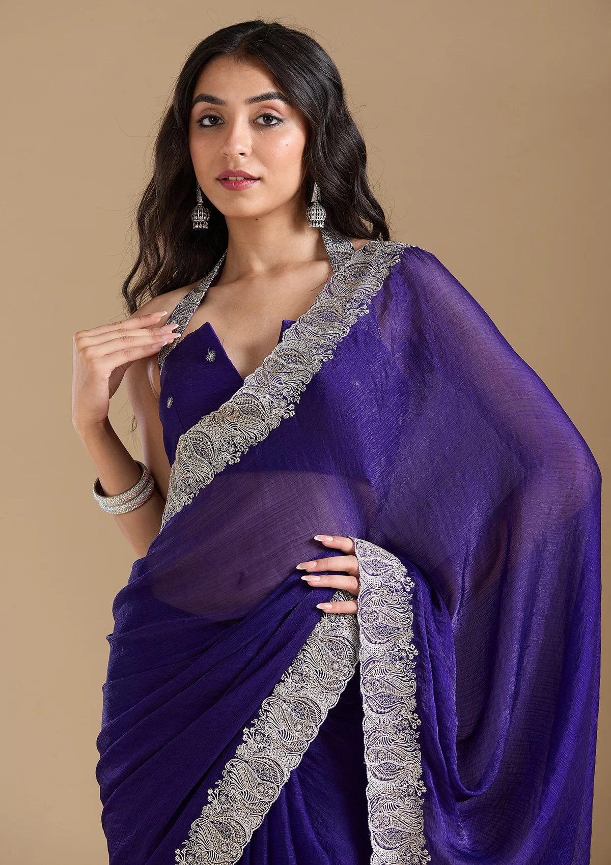 Violet Zariwork (Silver) Chiffon Saree